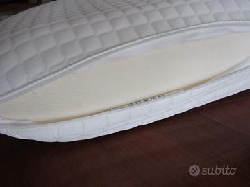 Cuscino ergonomico in memory foam (schiuma ammortizzante su un lato e gel rinfrescante sull'altro) con uno strato superiore in gel che offre una superficie fresca su cui dormire, utile soprattutto in estate. Il memory foam avvolge la testa, il collo e le spalle, alleviando la pressione e la tensione. Dotato di piccoli fori, nella parte centrale che permettono all'aria di circolare e dissipano l'umidità. Ottimo per chi dorme sul fianco o sulla schiena e ha bisogno del sostegno di un cuscino alto e rigido. Sfoderabile, la fodera può essere lavata in lavatrice a 40°C.