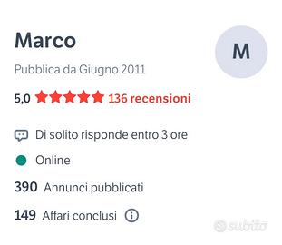 Paga in totale sicurezza con TuttoSubito e beneficia della Protezione Acquisti. I tuoi dati di pagamento non vengono mai condivisi con il venditore.