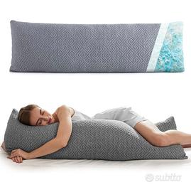 Cuscino studiato per chi dorme sul fianco e si sveglia dolorante, ti permette di tenere braccia e gambe aperte; vedi foto per i materiali, si può usare anche come cuscino di sostegno; mi trovavo molto bene ma poi abbiamo comprato un Topper da materasso e il cuscino non mi serve più. Ha un anno di vita e sarà da sfoderare e lavare, è in ottimo stato senza difetti. Pagato 70€ su Amazon.