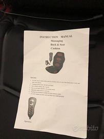 Vendo (NUOVO) per regalo ricevuto doppio, sedile massaggiante con funzione di calore e vibrazione, programmabile per massaggiare solo la schiena, solo il collo o magari entrambi schiena e collo.