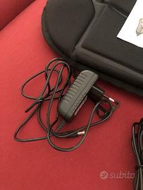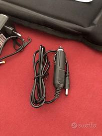 Completo di cavo alimentazione 220V per la casa ed anche, per chi lo preferisce in auto durante un viaggio, alimentatore 12 V per auto