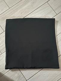 Cuscino natalizio nero con scritta "Merry Christmas" in oro e decorazioni di fiocchi di neve e pois bianchi/oro.
