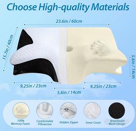 HOMCA Cuscino Ortopedico, 2 in 1 Cuscino Ergonomico in Memory Foam per Dormire, per Supporto Cervicale con Federa Sfoderabile e Lavabile, 60x40x12/14 cm, Nero