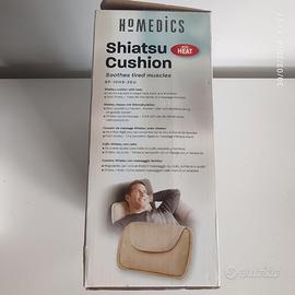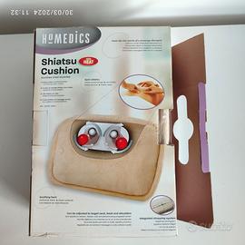 Vendo cuscino per massaggio Shiatsu termico, marca Homedics, modello SP-10HS-2EU, con meccanismo di massaggio Shiatsu con azione a pollice circolare e calore che dona sollievo ai muscoli affaticati. Questo cuscino in tessuto morbido e confortevole è nuovo, mai usato ancora nella confezione originale e completo di istruzioni.