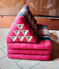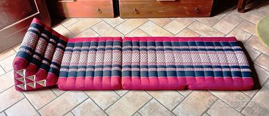 Cuscino / materasso thai imbottito in kapok con 3 elementi pieghevoli, lunghezza con schienale di appoggio triangolare 175cm, larghezza 55cm, spessore 8cm, altezza schienale 30cm, misure da chiuso 50x50x55cm. Non spedisco, solo ritiro a mano
