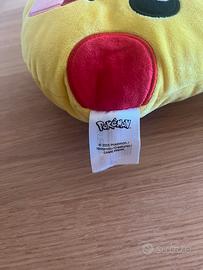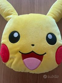 Vendo simpatico cuscino Pikachu originale Pokémon, in morbido tessuto peluche. Forma rotonda con orecchie 3D, guance rosse e classica espressione sorridente del personaggio più amato della serie! Perfetto per decorare il letto, il divano o per regalare a un appassionato.