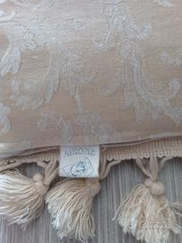 Morbido cuscino d'arredamento elegante imbottito, color crema, damascato con decorazioni floreali intessute sulle due facce.