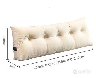 Cuscino testiera letto ergonomica, morbido ma ottimo sostegno. Comodo per stare a letto a leggere, vedere la TV e avere un appoggio. È stato usato ma pochissimo per cambio arredamento. Vendo alla metà del prezzo di acquisto. Lunghezza 150 cm, va bene sia su un letto alla francese, sia per un matrimoniale (come quello in foto).