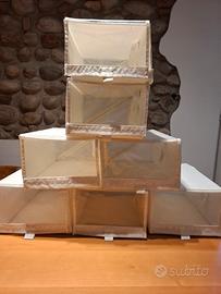 custodie per scarpe in poliestere misura 22x34x16 marchio IKEA colore bianco con mascherina trasparente.