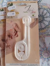 Cutter a rotella in plastica per decorazioni su pasta di zucchero. Il kit comprende tre diverse rotelline per tre diversi disegni.