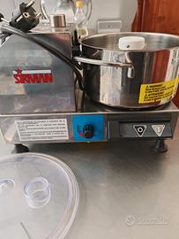 La vasca è realizzata in acciaio inox con uno speciale fondo termico ed è dotata di manici per una facile presa.