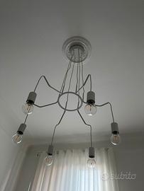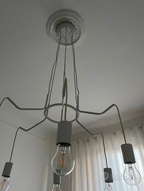 Lampada a sospensione Cuyama, lampada a sospensione moderna in metallo in bianco, 6 luci, 6 x E27, lampada a sospensione regolabile in altezza, senza lampadina/e