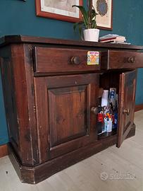 scrittoio e mobile con due ante, legno impiallacciato, leggermente usurati, ma possono tornare come nuovi se vengono trattati con prodotti.