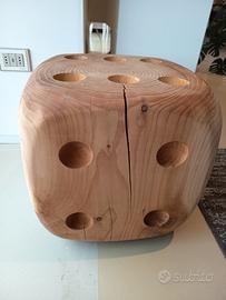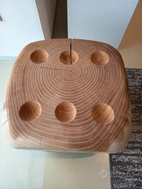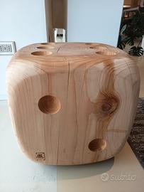 Sgabello in legno massello di cedro profumato lavorato da un blocco unico, chiaro rimando al famoso gioco da tavolo.