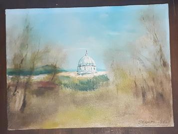 Sto svuotando la soffitta ed ecco un piccolo dipinto, senza cornice, solo tela e relativo telaietto, firma e ben leggibile "M. Moscatelli".