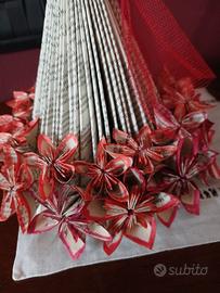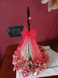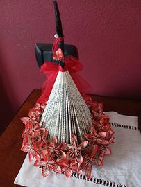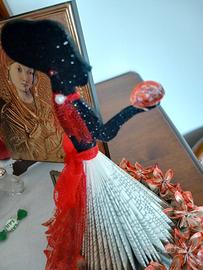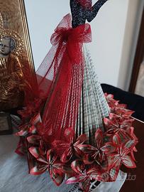 Dama dei fiori, realizzata con tecnica book folding, impreziosita da tulle, perline, sagoma in gomma eva glitterata h. 27 cm, larghezza 20 cm