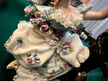 artista Giuseppe cappè 1950 1970 l'abito presenta la tecnica del "tulle de saxe" o porcellana traforata materiale porcellana biscuit policroma con finitura lucida sono visibili tutti i marchi capodimonte e firma dell'artista