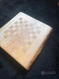 Dama costruira artigianalmente, con legno di pino e frassino della valle d’aosta piu precisamente brusson, la dama é quadrata e misura 50 cm x 50 cm con uno spessore di 5 cm,