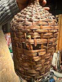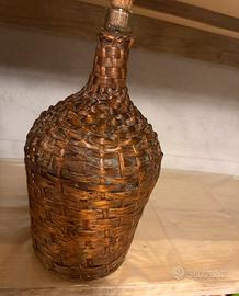 Damigiana vintage in vetro con rivestimento in vimini intrecciato a mano.
