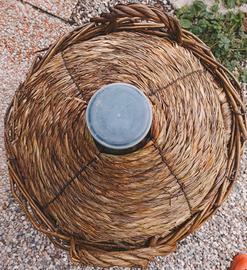 damigiana 50 Lt vetro soffiato, impagliata ottima conservazione. Arredamento vintage.