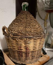 Vendo damigiana in vetro con rivestimento in vimini, ideale per arredamento rustico, cantina, agriturismo o come elemento decorativo vintage.
