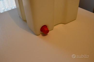 DAMIGIANA IN VETRORESINA DA LITRI 26 MUNITA DI MANIGLIE E DI RUBINETTO FONDO QUADRATO QUINDI MOLTO STABILE NEL TRASPORTO USATA PER VINO. Disponibile per altre foto se interessati. Accetto offerte
