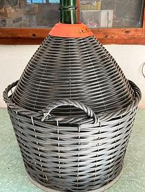 Vecchia Damigiana in vetro fatta a mano con collo rinforzato come ai vecchi tempi litri contenenti 61 e non 54 come di solito sono tutte quelle dí maggiori dimensioni e competa di veste in plastica.