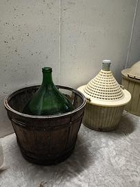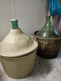vendo 4 damigiane in vetro di diverse capienze utilizzabili come contenitori o per arredo casa/giardino....inoltre ci sono due ceste vecchie in legno