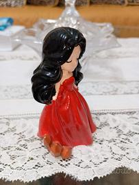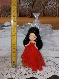 Damina in ceramica decorata a mano, soggetto femminile, ideale per bomboniere comunione; altezza 10 cm. Colori come da foto o personalizzati a scelta.