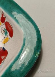 artistico piatto quadrato De Simone 20x20 ceramica dipinta a mano raffigurante pescatori, decorato con scena di pesca