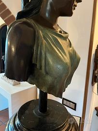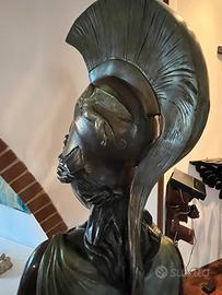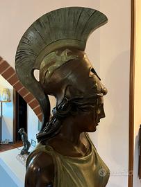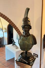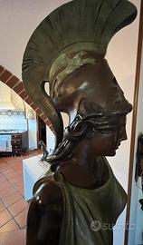 Imponente Atena alta 1 metro larghezza spalle 50 profondità 40 innalzata su di una base di pregiato marmo portoro e girevole su se stessa ..busto in bronzo della fonderia summer (napoli) raffigurante Atena dea guerriera greca della saggezza e della guerra con in il suo elmo piumato ..Ogni dettaglio e minuziosamente riprodotto dai capelli alle pieghe della veste grazie al tradizionale metodo di fusione a cera persa realizzato a mano ..fonderia sommer napoli