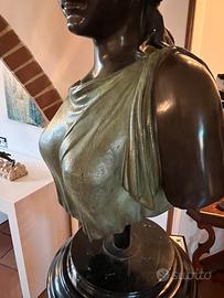 Imponente Atena alta 1 metro larghezza spalle 50 profondità 40 innalzata su di una base di pregiato marmo portoro e girevole su se stessa ..busto in bronzo della fonderia summer (napoli) raffigurante Atena dea guerriera greca della saggezza e della guerra con in il suo elmo piumato ..Ogni dettaglio e minuziosamente riprodotto dai capelli alle pieghe della veste grazie al tradizionale metodo di fusione a cera persa realizzato a mano