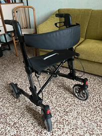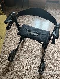 Deambulatore modello Quava della marca Vermeiren, leggero, 4 ruote in alluminio con freni di parcheggio. Ideale per persone con ridotte capacità motorie ma ancora in grado di utilizzare i freni in caso di perdita di equilibrio. Il cuscino imbottito e la cintura permettono di sedersi e riposare in sicurezza.