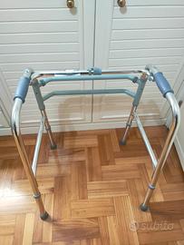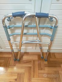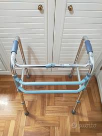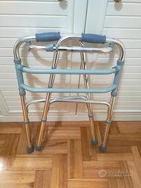 Deambulatore per adulti Mobiclinic modello Mezquita, per assistenza alla mobilità e migliorare l'equilibrio, ultraleggero (circa 2,7 kg). Tipologia: Dispositivo di supporto ortopedico pieghevole, realizzato in alluminio e progettato per essere pieghevole e regolabile in altezza. Caratteristiche principali: Modello: Mezquita, un deambulatore "senza ruote" (a 4 puntali antiscivolo) ideale per uso interno. Regolabilità: Le gambe sono regolabili in altezza da circa 76 cm a 94,5 cm per adattarsi alla statura dell'utente. Design: Presenta una doppia barra di sicurezza frontale per una maggiore stabilità e impugnature ergonomiche per il comfort delle mani. - Marca: Mobiclinic - Modello: Mezquita - Colore: Blu - Materiale: Metallo