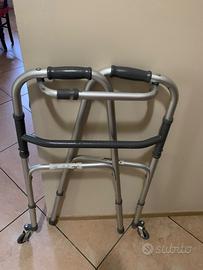 Deambulatore per anziani con due ruote , regolabile in altezza e richiudi bile per essere trasportato. Come nuovo