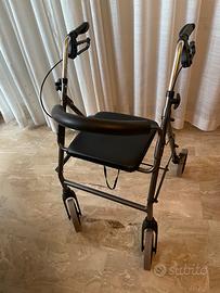 Deambulatore pieghevole con ruote, modello RO2 Rollator, usato quattro volte in tutto, praticamente nuovo.