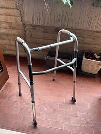 Vendo deambulatore pieghevole in alluminio, leggero e stabile, ideale per anziani o persone con difficoltà di movimento.