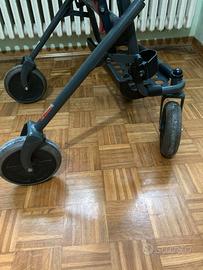 Deambulatore pieghevole, regolabile in altezza. Ruote grandi, adatte anche per uso esterno, diametro 18 x 5 cm di spessore.