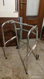 Deambulatore pieghevole, regolabile in altezza con 2 ruote e 2 puntali autobloccante. Vendo a 30 euro perché devo liberare un locale. No perditempo. No scambio. Non spedisco. Solo ritiro a mano.