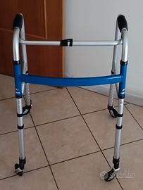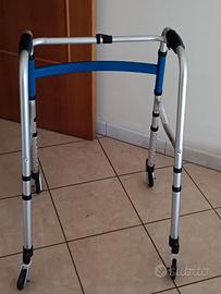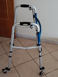 Vendo Deambulatore pieghevole con 4 ruote piroettanti per anziani, in alluminio leggero. Usato pochissimo.