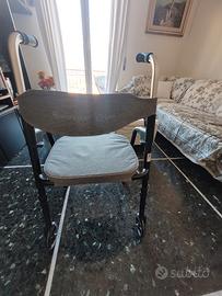 Deambulatore rollator pieghevole con carrello e seduta.