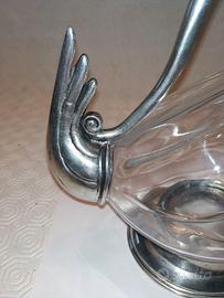 Splendido decanter o caraffa in vetro spesso modellato e montatura in peltro, realizzata tra gli anni '30 e '50, in stile Art Décò.