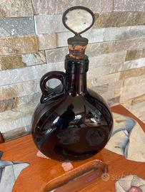 Originale bottiglia in vetro pesante color tabacco con tappo in madreperla opera di tipica fattura inglese della prima metà del XIX secolo.