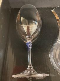 Decanter con 2 calici Lisa Mori by Inn Crystal 24% Pb0. Made in Austria. I calici sullo stelo hanno un grappolo d’uva blu. Nuovi mai usati.