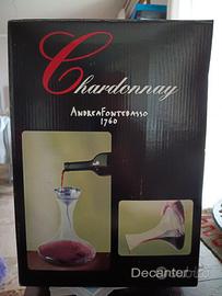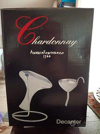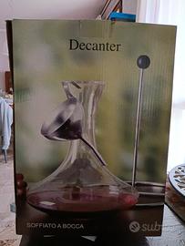 Decanter di vetro soffiato a bocca con accessori: imbuto acciaio inox e supporto per asciugatura in verticale. Marchio Andrea Fontebasso 1760. Mai usato, nella confezione originale. Ottimo come regalo!
