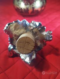 Il tappo è una scultura in metallo ricoperto in argento 925 che rappresenta un grappolo d'uva con foglie.