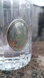 Questa elegante bottiglia in cristallo, attribuibile alla produzione della nota azienda italiana Puthod, rappresenta un raffinato oggetto d'arte della tavola o da toeletta, arricchito da dettagli in argento 925. Caratteristiche Principali Materiale: Cristallo di alta qualità, caratterizzato da una lavorazione a coste verticali (molatura) che crea giochi di luce e riflessi brillanti. Tappo: Realizzato in cristallo coordinato, presenta una forma circolare piatta e sfaccettata, progettata per una presa agevole e una chiusura sicura. Dettaglio in Argento: Al collo della bottiglia è appeso, tramite un cordoncino argentato ritorto, un ciondolo o medaglietta ovale in argento 925. Questa tipologia di decoro è tipica di oggetti regalo di lusso o articoli da collezione prodotti tra la fine del XX secolo e l'inizio del XXI. Stile: Design classico ma intramontabile, che si adatta perfettamente sia come decanter per liquori (come whisky o cognac)