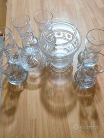 decanter e 6 bicchieri cristallo molato con incisioni e molatura a stella tipiche della lavorazione boema dei primi del 900 Nuovo