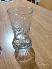 decanter in cristallo molato con coperchio elegantemente inciso abbinato a 6 calici in cristallo con incisioni e molatura a stella tipiche della lavorazione boema