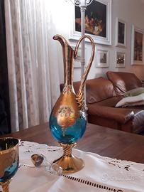 Set di calici in vetro di Murano dipinti a mano e decanter vino. Ottime condizioni